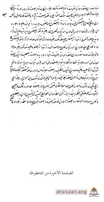 وفي الختام نتقدَّم بخالص شكرنا وعظيم امتناننا إلى سماحة المرجع الديني الأعلى السيّد علي الحسينيّ السيستانيّ T حيث وفّر لنا هذه النسخة الفريدة للرسالة, سائلين المولى القدير أن لا يحرمنا من بركات وجوده الشريف إنَّه سميع مجيب, والحمدُ لله أوَّلاً وآخراً وصلَّى الله على محمَّد وآله الطاهرين.