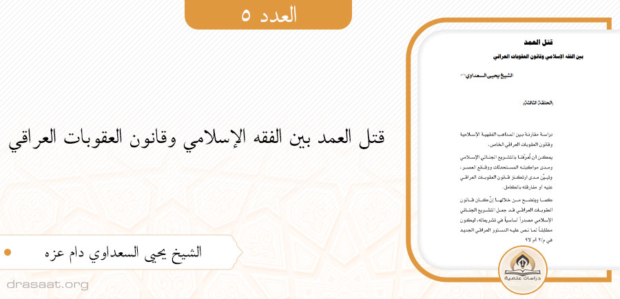 • قتل العمد بين الفقه الإسلامي وقانون العقوبات العراقي (الحلقة الثالثة)