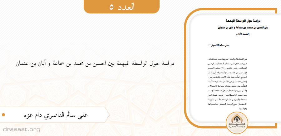 • دراسة حول الواسطة المبهمة بين الحسن بن محمد بن سماعة و أبان بن عثمان ( القسم الأول )